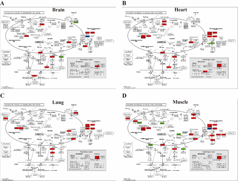 图2. 内质网中的蛋白质加工通路在平胸龟脑(A)、心脏(B)、肺(C)和肌肉(D)中富集情况