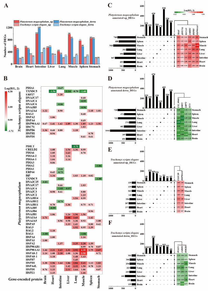 图1. 平胸龟和红耳龟在高温下各组织器官的差异表达基因