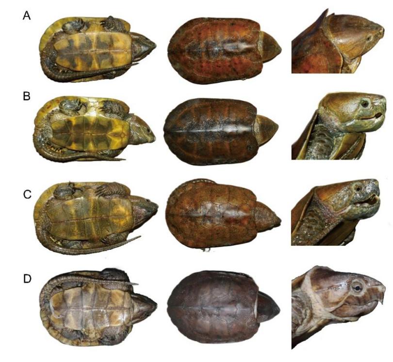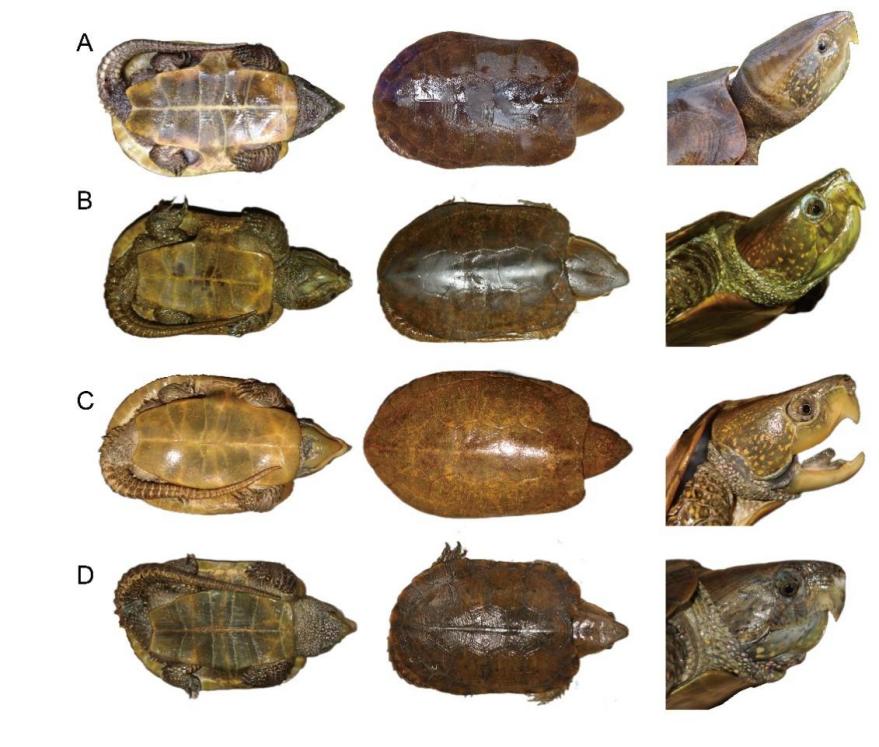 图4 缅甸平胸龟的腹、背面和头部形态特征