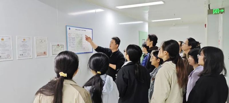 紧接着,在带队指导老师和热泉科技工作人员的组织下,师生们先后走进研发实验室、质控实验室、洁净车间及冷库等核心区域,近距离观察生产设备运行、产品检测流程,直观感受企业标准化生产与精细化管理模式。工作人员对学生提出的就业问题、技术问题、生产细节等问题进行解答,让抽象的专业知识变得具体可感。