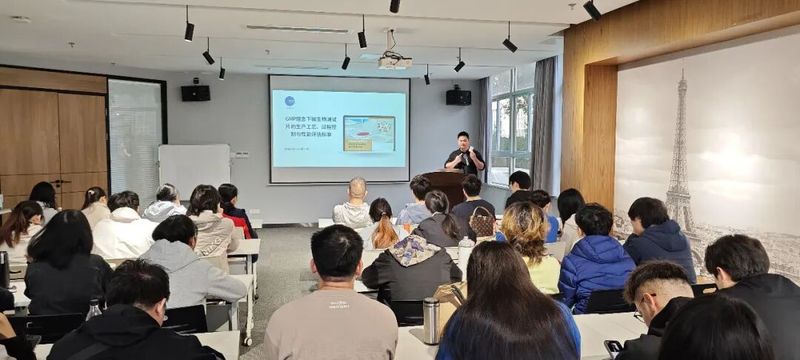 上午9时30分,实习活动在热泉科技一楼大会议室正式启动。热泉科技总经理、暨南大学生科院09级校友蔡汉宁代表公司发表欢迎致辞,详细介绍了企业发展概况,并围绕微生物快速检测行业的现状、前景及创业历程展开分享,让师生们对快速测试片行业发展趋势与企业发展运营模式有了全面认知。随后,研发负责人聚焦测试片产品全流程研发,从市场需求调研、配方研发到性能验证和试产,层层拆解研发关键环节;质量生产负责人以GMP理念为核心,深入讲解了测试片生产工艺、过程控制要点及性能评估标准。