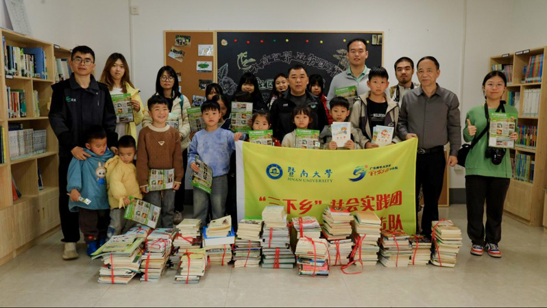 2月28日下午,一场特殊的捐赠仪式在车八岭保护区社区共建图书馆举行。432册图书整齐地放进车八岭世界生物圈保护区社区共建图书馆,从科普绘本到文学经典,从自然图鉴到科学故事,让山区的孩子们在阅读中拓宽视野,认识世界。这些书籍全部由暨南大学师生和校友们无偿爱心募捐而来,承载着对山区孩子们的关爱与期许。队员们不仅送来书本,更留下来为希望小学的孩子们辅导功课,解答疑惑。随后,大家拿出手机演示AI物种识别小程序,教孩子如何通过镜头认识身边的花草菌菇;科技的种子,就这样播撒在幼小的心灵中,悄然生根发芽。